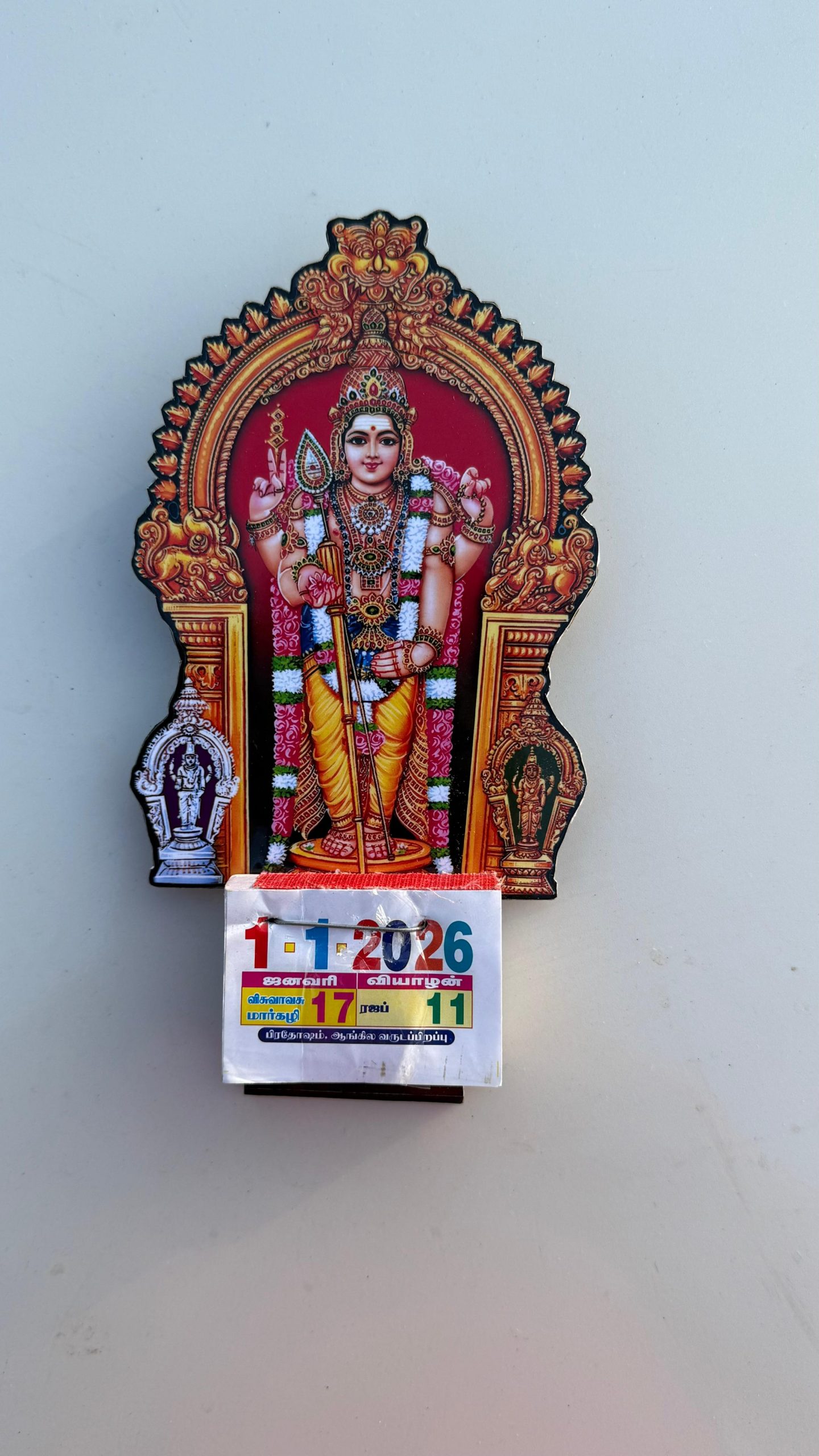 Bring divine blessings and traditional beauty into your home or workspace with our Wooden Murugar Cutout Calendar. Crafted with fine detailing, this elegant Murugar design combines spirituality with daily utility, making it perfect for pooja rooms, offices, and gifting.
